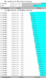 So, why wait for 1+ seconds when you can get it in less than a second (time taken on my comp to load a standard score page on a Cricket website and Google). And, the score update, taken from about 2-3 cricketing websites (ws-3.willow.tv, www.cricinfo.com, www.cricbuzz.com), is almost instantaneous. Either Google is crawling these sites really regularly or it has some sort of an understanding to share data and has a mechanism of regular updates with them. Now, if its the later, these websites better charge Google for the content they are providing.
